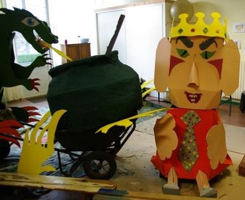 Après avoir préparé l'affiche, les enfants construisent leurs chars et préparent leurs déguisements !